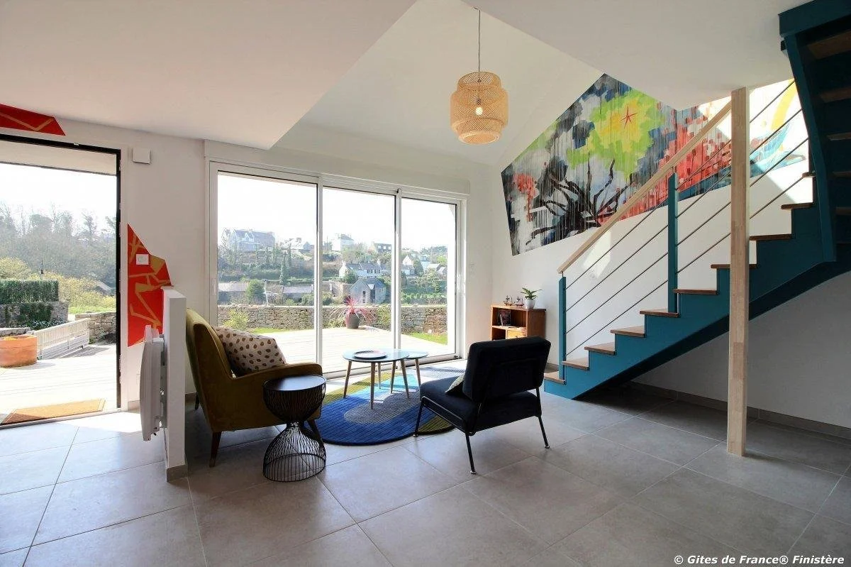 Portsall 1978 est un loft qui évoque avec intelligence l’échouage de l’Amoco Cadiz et nous rappelle l’importance de prendre soin d’un lieu naturel d’exception. La terrasse du loft dispose d’une vue mer sur les eaux turquoises réputées de Portsall.